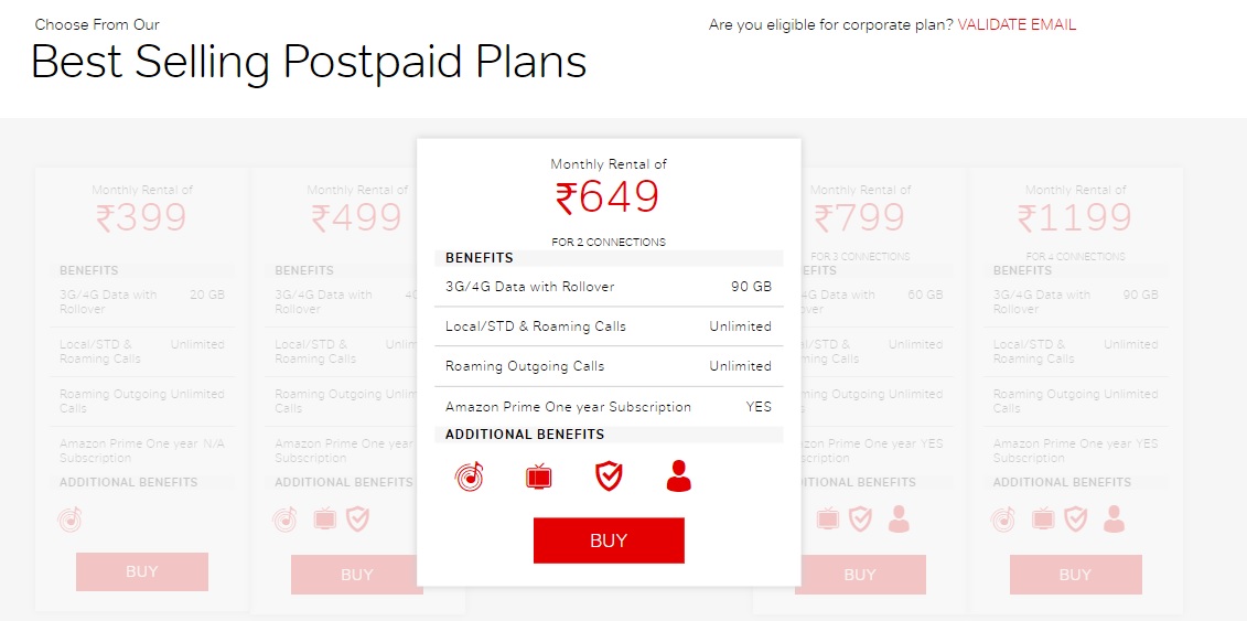 For comparison, Vodafone has Rs. 499 RED postpaid plan that offers 75GB of 4G data with data rollover up to 200GB. The plan also offers unlimited calls with national roaming. Additionally, users will get one year of Amazon Prime membership and complimentary mobile insurance which includes damage repair, extended warranty and antivirus.