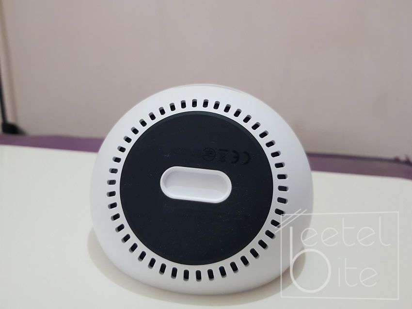 Amazon Echo Spot has a round body shape which looks like a ball that was cut in half. It weighs around half a kilogram and since it is going to lie on a table all the time the weight should not be an issue. Speaking of keeping it on a table, the Echo Dot comes with a rubber pad at the bottom which keeps it in place and it does not let it move a bit, even with heavy vibrations created by the speakers themselves during alarms and Alexa calls. The speaker grills are located under the speaker like most of the Echo smart speakers. So we recommended that you keep it on a flat surface to amplify the sound.