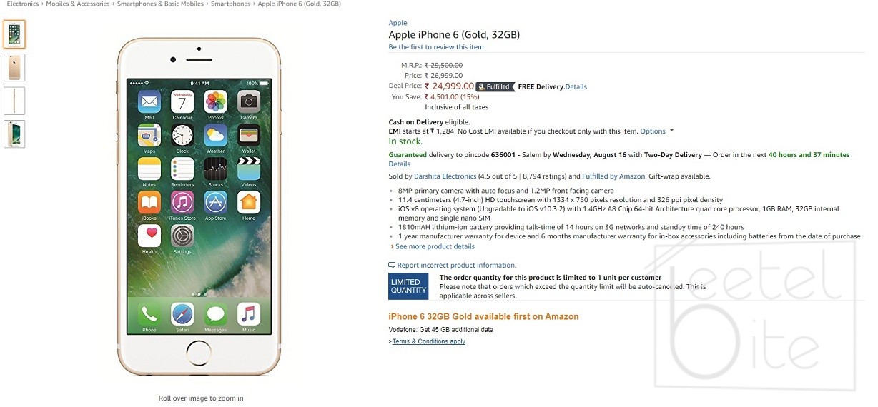 In order to make the deal a little more lucrative, Amazon also offers cash back up to 15% on SBI debit & credit card. Customers can also opt for a 3-month no-cost EMI option for purchasing their desired smartphone. As an added treat, Vodafone is offering 45GB data free with the iPhone 6 32GB Gold.
