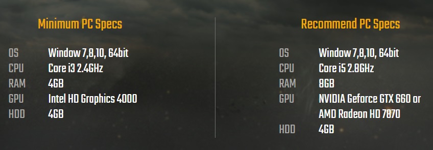 Minimum Specifications: The company suggests the user should have at least an Intel Core i3 processor coupled with a minimum of Intel HD 4000 Graphics. For storage and RAM, PUBG Lite suggests the user should have at least 4GB of each available.