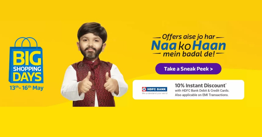 Flipkart is again bringing another sale on the e-commerce website. The Flipkart Big Shopping Days Sale is set to kick off on May 13 and will go on until May 16. The sale will bring offer, massive discounts on new products as well as on exchange.