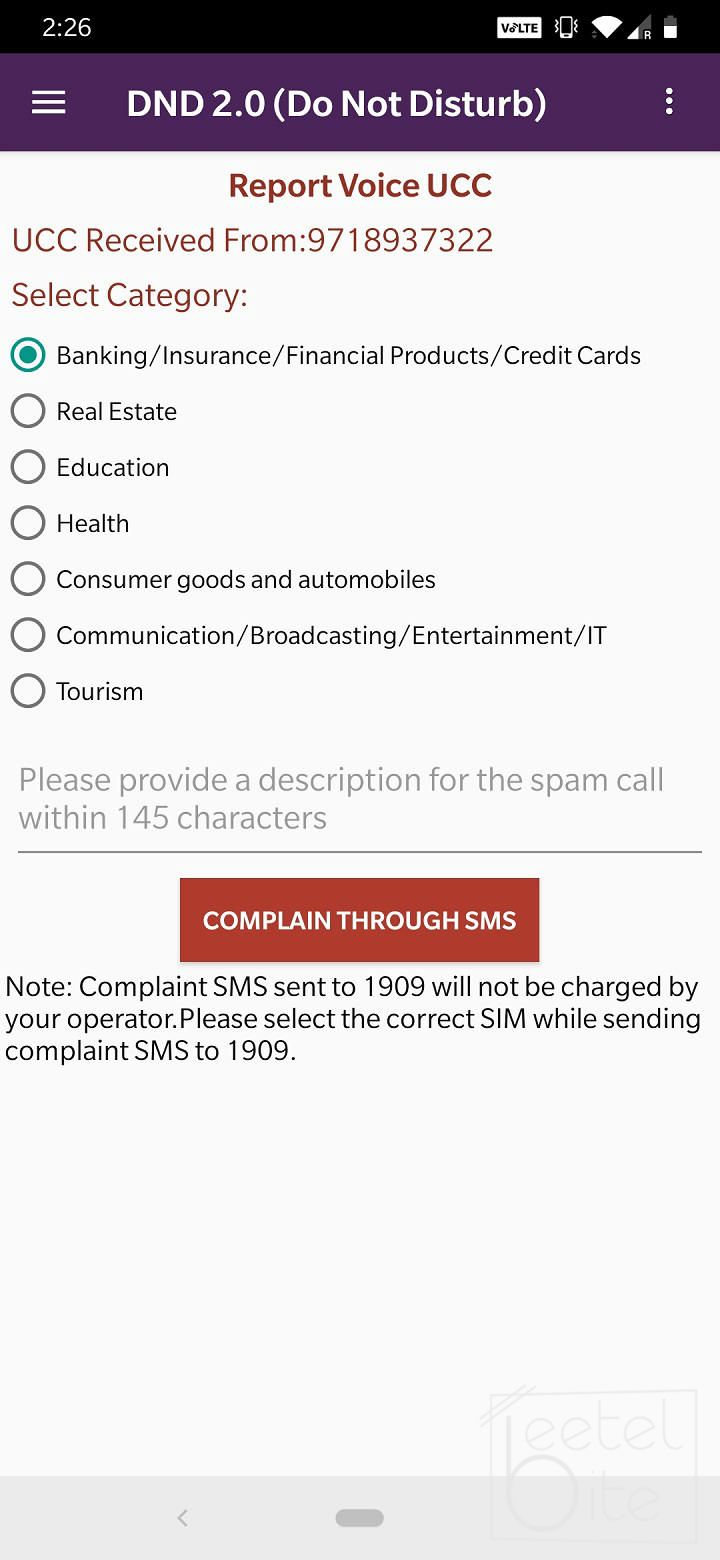 The app will require you to fill in a few details in order to know more about the people you are reporting as spam. However, in order to register a complaint, TRAI requires you to register DND service with your carrier. You can do so by sending an SMS saying START to 1909. Once the service is activated from your carrier's side, you will have the control to block the spammers that are disturbing even after DND is activated.