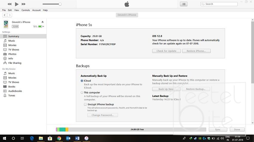 Step 3: Fire up iTunes and click go to the Summary section listed under the Device tab