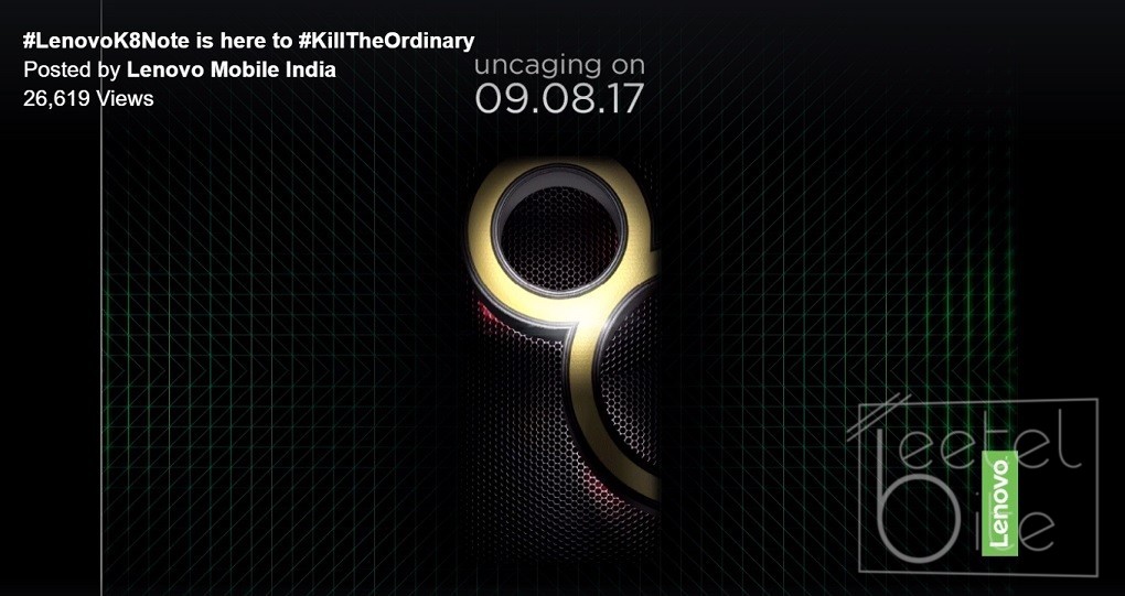 Lenovo India on its social media channels said “After a lot of guesses, most of you got it right! We are bringing to you the #LenovoK8Note that will #KillTheOrdinary smartphones & stand way ahead of its competition! Are you ready to see it uncaging on 09.08.17?”