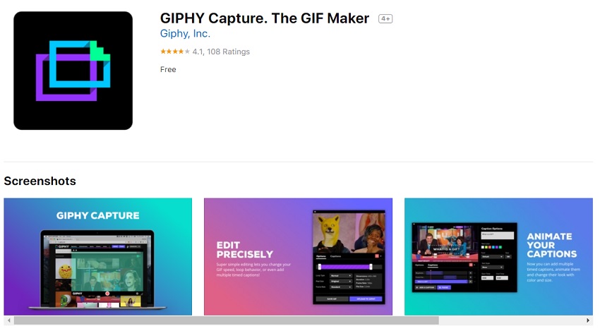 GIPHY Capture is a free app available on the Mac app store. As the name suggests, the app records GIFs instead of recording MP4 or AVI videos. So, this also means that the app has a 30-second record limit. However, this app can come in really handy when you want to shoot really short tutorials.