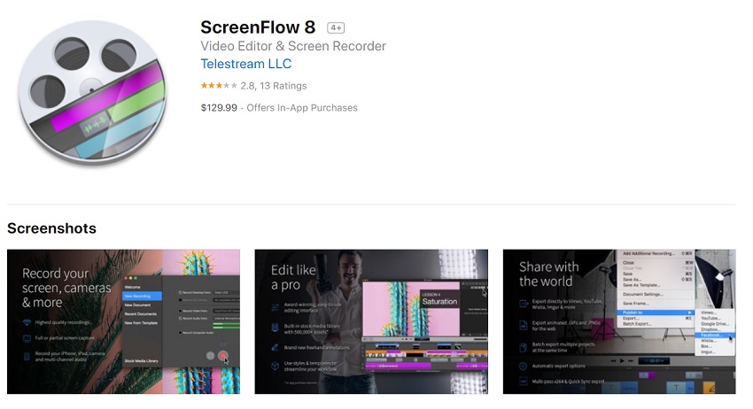 ScreenFlow 8 is quite expensive for a screen recorder.