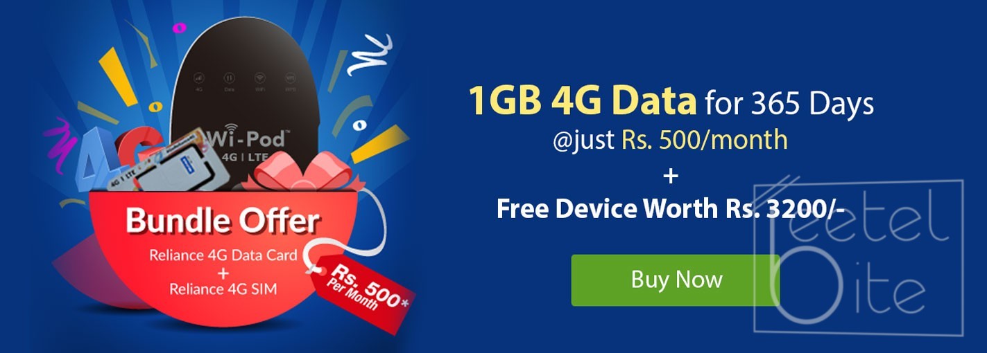 Reliance Communications, to maintain the competition, has come up with a new offer for its 4G Wireless dongle. The company has announced a new bundle offer where Reliance will give a free 4G sim card with the Reliance 4G Wi-Pod.