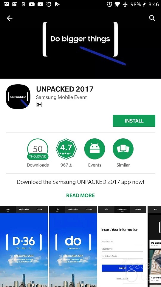 As Samsung always like to do the best for their events, they have introduced an app named Unpacked 2017 which is available on both Android and iOS. The application will allow users to easily live stream the event directly from their smartphone or tablet. The app also has other features, like user can navigate to some videos related to the upcoming Note 8.