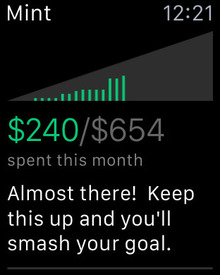 If tracking finances from your wrist is useful, Mint lets you set and track daily and monthly spending limits, and lets you see how much you have spent for specific categories. Mint will also send notifications, which should help those who pay attention to it to stay on budget.