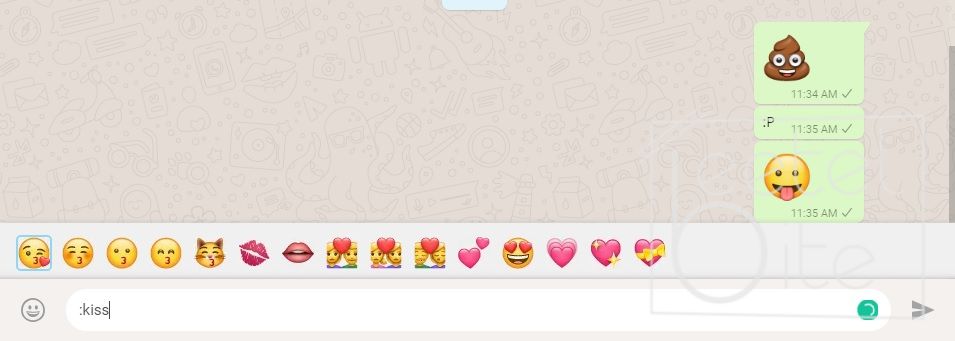 The whole process isn't that complicated but what if I told you it can be easier? The web interface of the app allows you to search for an emoji just by putting ":" in the text box. For example, you want to send the Kiss emoji to someone, you can just type :kiss and you will get some suggestions. You can also use emoticons like :-D to bring the emoji.