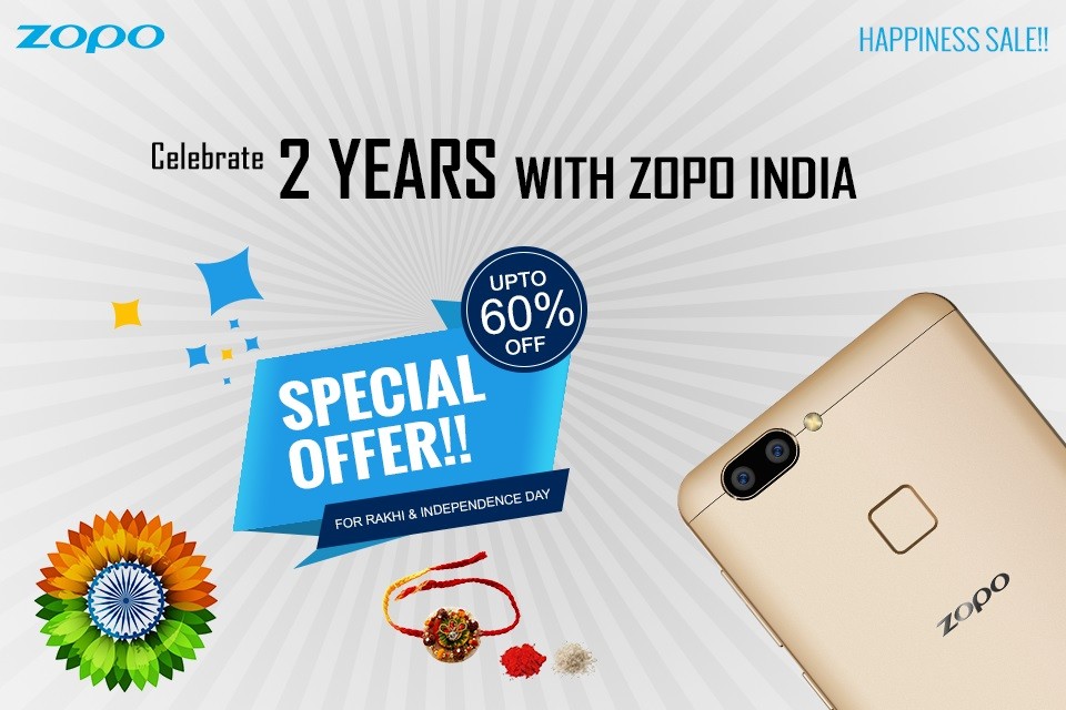Zopo, a Chinese smartphone manufacturer that entered the Indian market two years ago is now celebrating its two year anniversary. As the second grand anniversary of ZOPO collides with the festive season of Raksha Bandhan and Independence Day, Zopo has decided to celebrate it in the grandest way possible. The company has announced the “ZOPO 2nd Anniversary Sale” today with heavy discounts up to 60% on nine of their successfully running Smartphones models for all the prospective Indian Smartphone buyers.